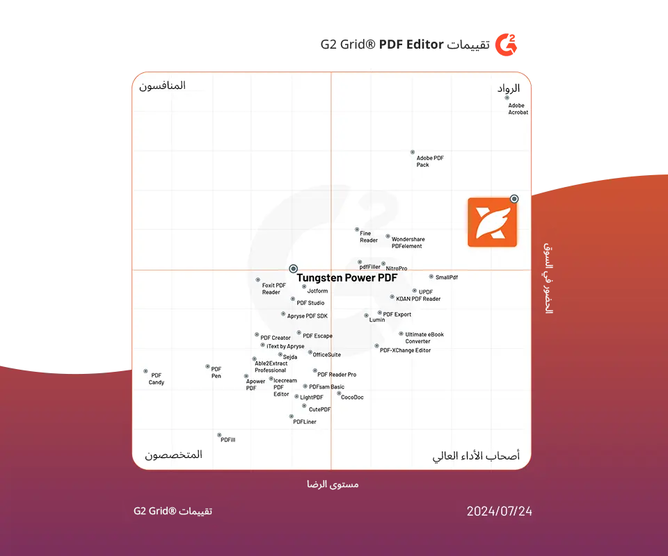 يقدم Foxit PDF Editor للشركات حلًا متميزًا لإدارة المستندات الرقمية مقارنة بـ Tungsten Power PDF. بفضل دعمه لأجهزة الكمبيوتر المكتبية التي تعمل بنظامي Windows وMac، بالإضافة إلى تطبيقات الهواتف المحمولة التي تعمل بنظامي iOS وAndroid، يضمن Foxit الوصول السلس عبر جميع المنصات—الأمر الذي يفتقر إليه Tungsten. تتمتع Foxit أيضًا بتصنيف أعلى على G2.com، حيث حصلت على 4.6 نقاط مقارنة بـ 3.8 نقاط حصلت عليها Tungsten، ما يعكس رضا المستخدمين وموثوقيتها الأقوى. مع ميزات متقدمة مثل الأدوات المدعومة بالذكاء الاصطناعي، تُعد Foxit الخيار المثالي للشركات.
